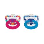 NUK Chupón Ortodóntico de silicona, libre de BPA, con forma de pezón y canales integrados que maximiza el movimiento de la lengua y previene las irritaciones, para bebes de (6-18m), 2 piezas por blíster, en diseños deportivos